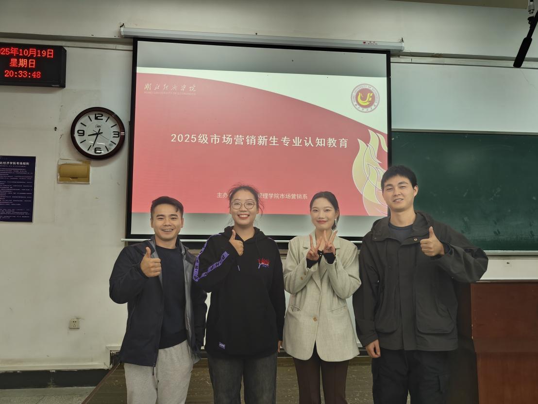 本网讯(通讯员:李根 审核:叶敏)2025年10月19日,工商管理学院于J1-306教室为2025级市场营销专业新生精心组织了一场专业认知教育活动,现场气氛热烈,新生们满怀期待。市场营销系李根老师、营销2541班和2542班班主任涂文扬老师,以及优秀学长学姐代表张倩雯、尹云峰、陈可出席了此次活动。