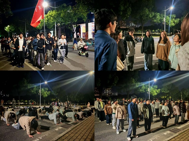 本网讯(通讯员:蔡豫琪 审核人:颜宸)为进一步强化工商管理学院团委、学生会干事的纪律观念,提升团队协作能力,涵养服务奉献精神,2025年10月21日至10月24日晚间,学院团委、学生会干事晚训活动在东大门草坪有序开展。