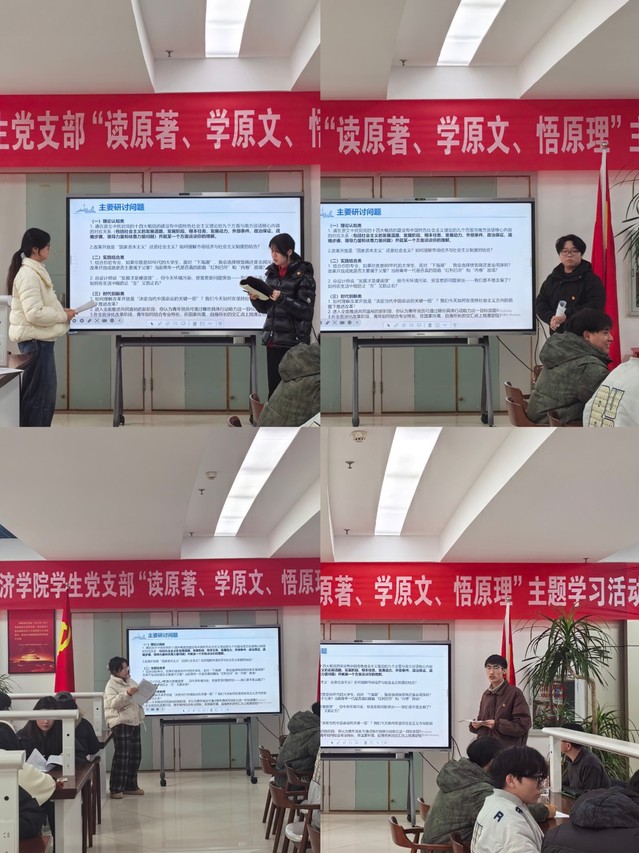 导读尾声,叶老师提出了“如何理解改革开放的时代红利”“新时代青年如何看待‘铁饭碗’和‘下海经商’”等研讨问题,引发了大家的深入思考。随后,党员们集体研讨,结合专业分享学习心得。
