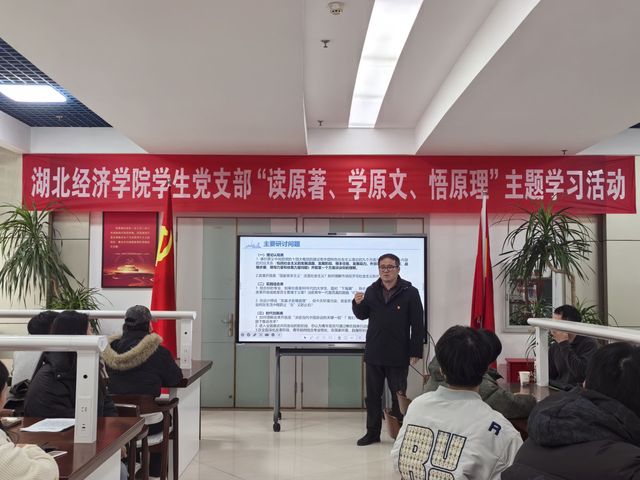 本网讯(通讯员:陈周易 审核:刘帷)12月31日下午,由学校党委组织部、党委学生工作部、图书馆、马克思主义学院主办,工商管理学院承办的第四期“读原著、学原文、悟原理”主题学习活动在图书馆马克思主义书房举行,本次活动由马克思主义学院叶欣明老师主讲。工商管理学院党委副书记刘帷、学生党总支副书记陈周易和学生党员代表参加此次主题学习活动。