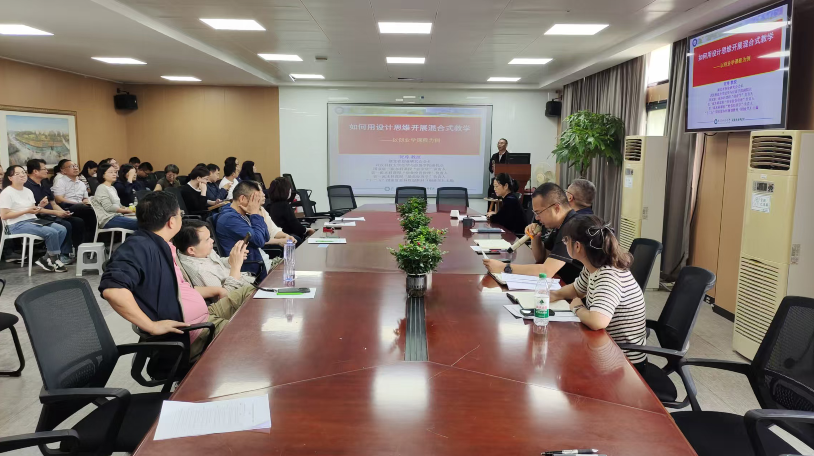 本网讯(通讯员 胡冰阳 审核人 钱玲)2025年9月25日下午,湖北经济学院工商管理学院在群贤楼412会议室举办“科研反哺教学:用设计思维点燃混合式创新”专题讲座。本次讲座特邀武汉科技大学法学与经济学院副院长、湖北省创业研究会会长贺尊教授担任主讲嘉宾,全院专任教师参会。
