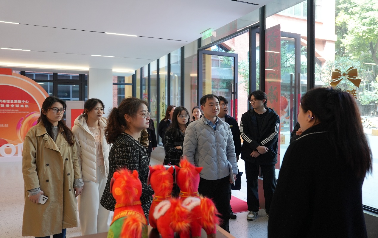 本网讯(通讯员:王灿 审核:钱玲)为深化产教融合,帮助工商管理专业学子直观感受跨境电商行业发展态势,明晰专业学习与职业发展方向,3月12日下午,工商管理学院副院长钱铃、工商管理系主任孙一平、副主任刘钢、刘骞、汪敢甫、王灿等教师代表带领学院2025 级工商管理专业全体新生及硕士研究生,赴江汉创谷六号跨境电商产业园开展参观学习活动。此次活动依托学院与园区共建的跨境电商人才实习实训基地,是学院落实校企协同育人、提升人才培养质量的重要实践。