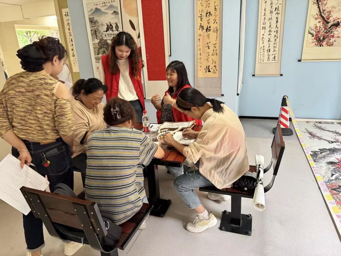 此次活动中,社区设置创作区,书法爱好者挥亳展示技艺;同时开设亲子书画体验活动,社区提供颜料,画具,在志愿者的帮助下共同体验绘画活动,让参与活动的每一位居民都能感受到书画艺术的魅力。我院志愿者在活动中积极协助社区帮助居民参与书画展,展现青年志愿者的担当与暖心。