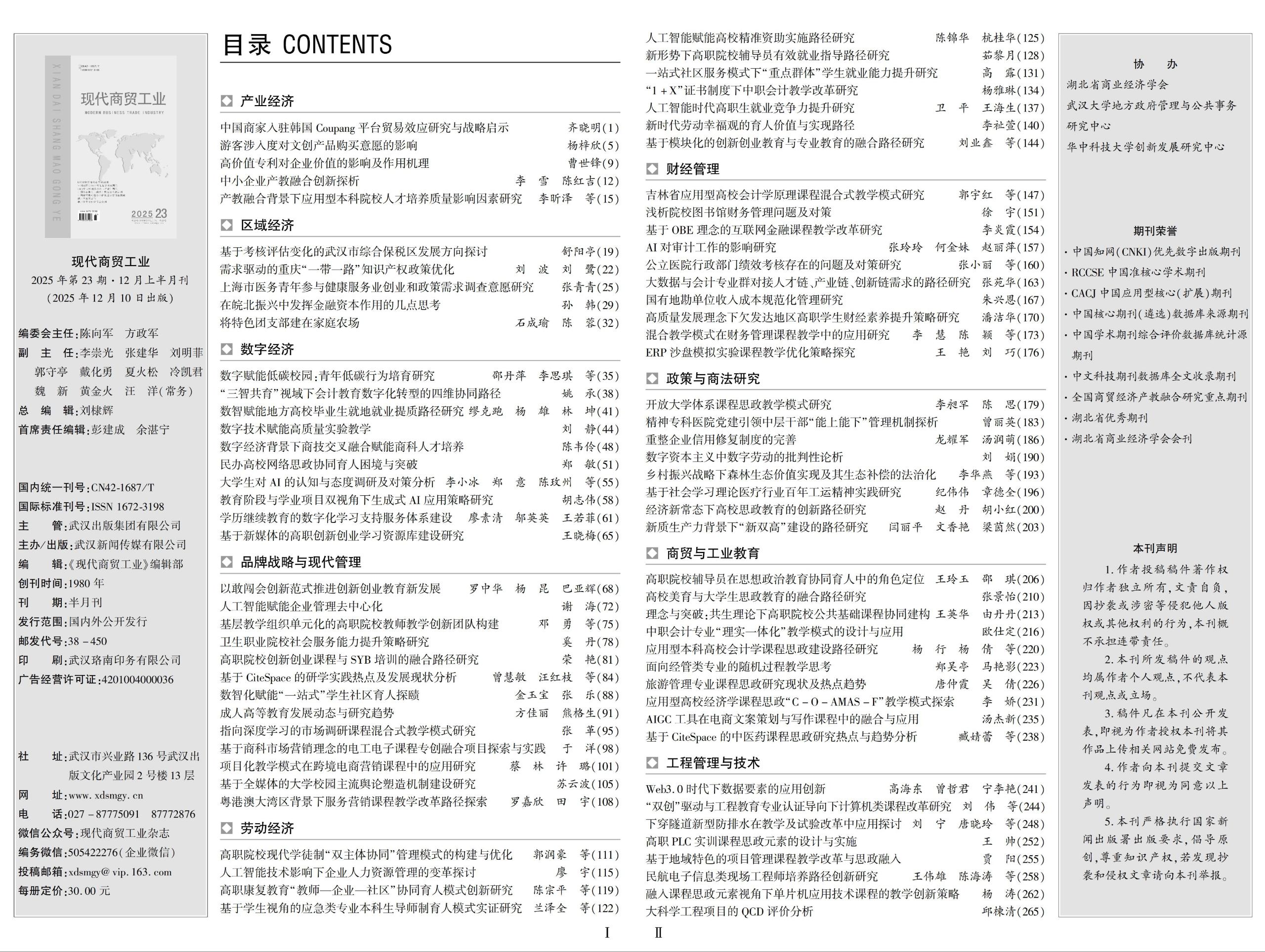 杂志主要栏目有:产业经济、区域经济、数字经济、现代物流与供应链管理、国际商贸、品牌战略与现代管理、劳动经济、财经管理、政策与商法研究、商贸与工业教育、工程管理与技术等。