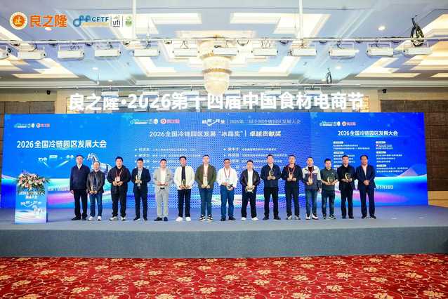 大会期间,2026全国冷链园区发展“冰晶奖”颁奖盛典同步举行。该奖项由良之隆中国食材电商节组委会与全国冷链商协会联席会议发起,象征冷链人纯净、坚韧、创新的精神,共揭晓年度最佳服务奖、最具潜力园区奖、新锐人物奖、创新人物奖、卓越园区奖以及卓越贡献奖等共六个奖项,表彰2025年度表现优异的企业和个人。